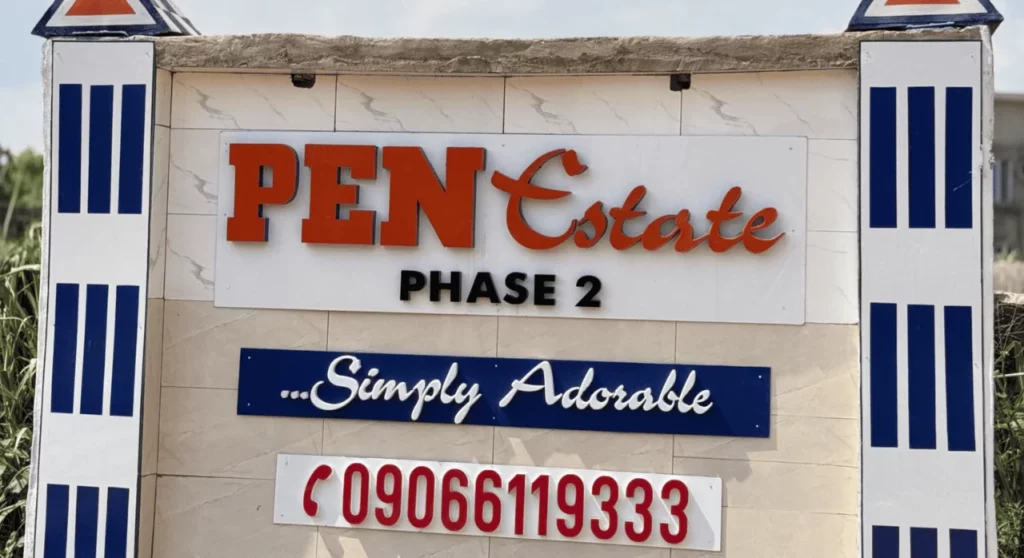 PEN ESTATE is a unique housing estate in a quiet and serene environment located in Asese/Maba(shortly after Ibafo town) over looking RCCG Auditorium off Lagos/Ibadan Expressway